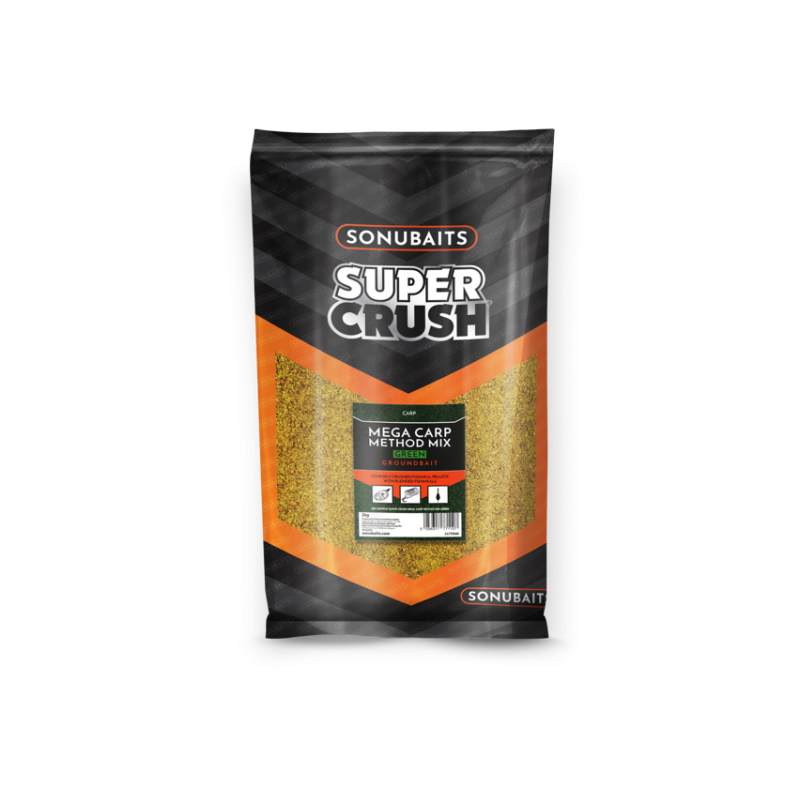 Sonubaits Supercrush Mega Carp Method Mix Green Grondvoer, is een grof gemalen gronvoer van vismeelpellets met extra vismeel is eenvoudig te bereiden en perfect voor verschillende vissituaties waarbij GROTE vissen het doel zijn. Net als de andere toonaangevende Match Method Mix is Mega Carp Method Mix ontwikkeld met Method feeder vissen in gedachten.